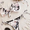 Bikini texturizada, corpiño con herradura en el centro y breteles regulables, la bombiless se ata a los costados.