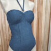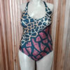 Bikini lycra estampada, corpiño estilo deportivo con tiras cruzadas en la espalda, bombiless.
