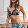 Bikini de lurex. Corpiño triangulo, breteles regulables, con prendidura trasera. Tangui less.