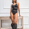 Body musculosa de microtul negro con brillos. Con prendidura debajo