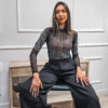 Body de microtul con strass, mangas largas, cuello recto, forrado de lycra. Con tazas no desmontables, prendidura en entrepiernas.
