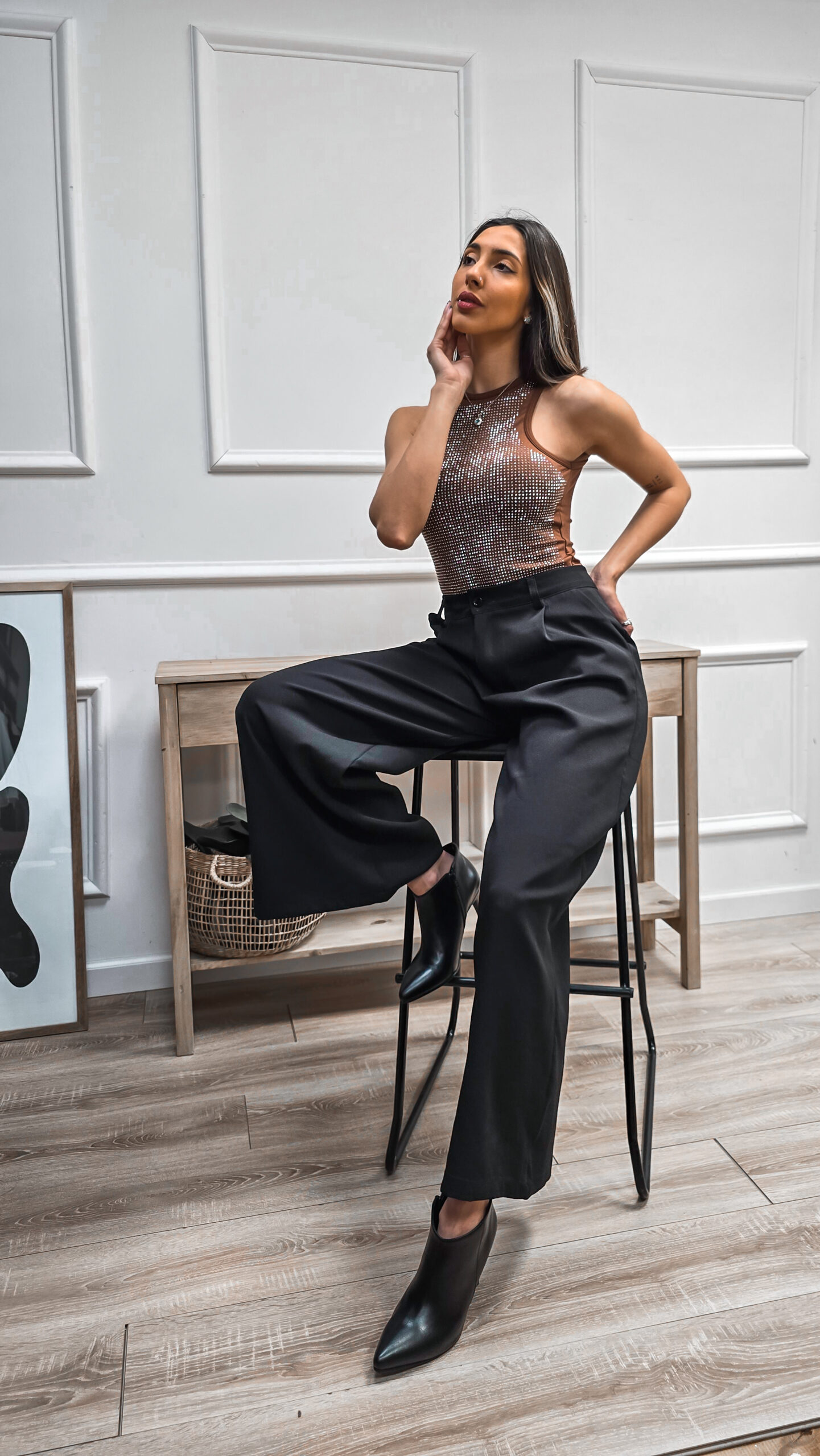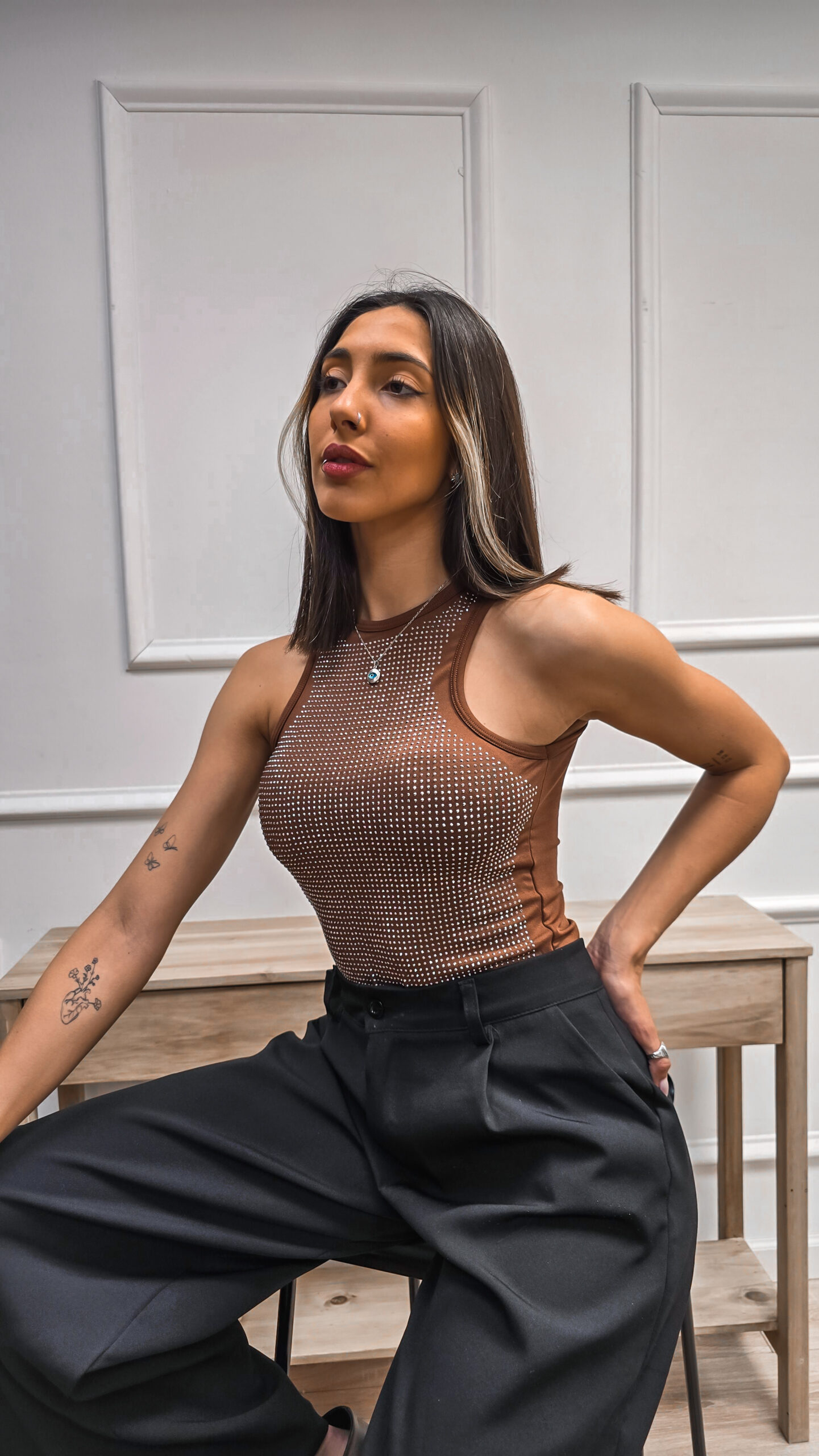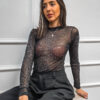 Body de lycra con strass, doble tela, musculosa corte americano, prendidura en entrepiernas.