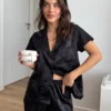 Pijama de verano camisero, mangas cortas más short, tela raso, estampado.