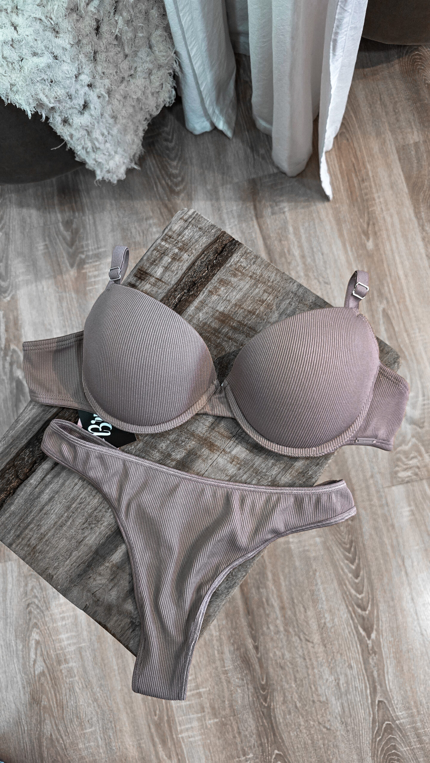 Conjunto taza soft de morley con coleta ancha y prendidura trasera, sin bajo busto. Bretel regulable. Bombiless.