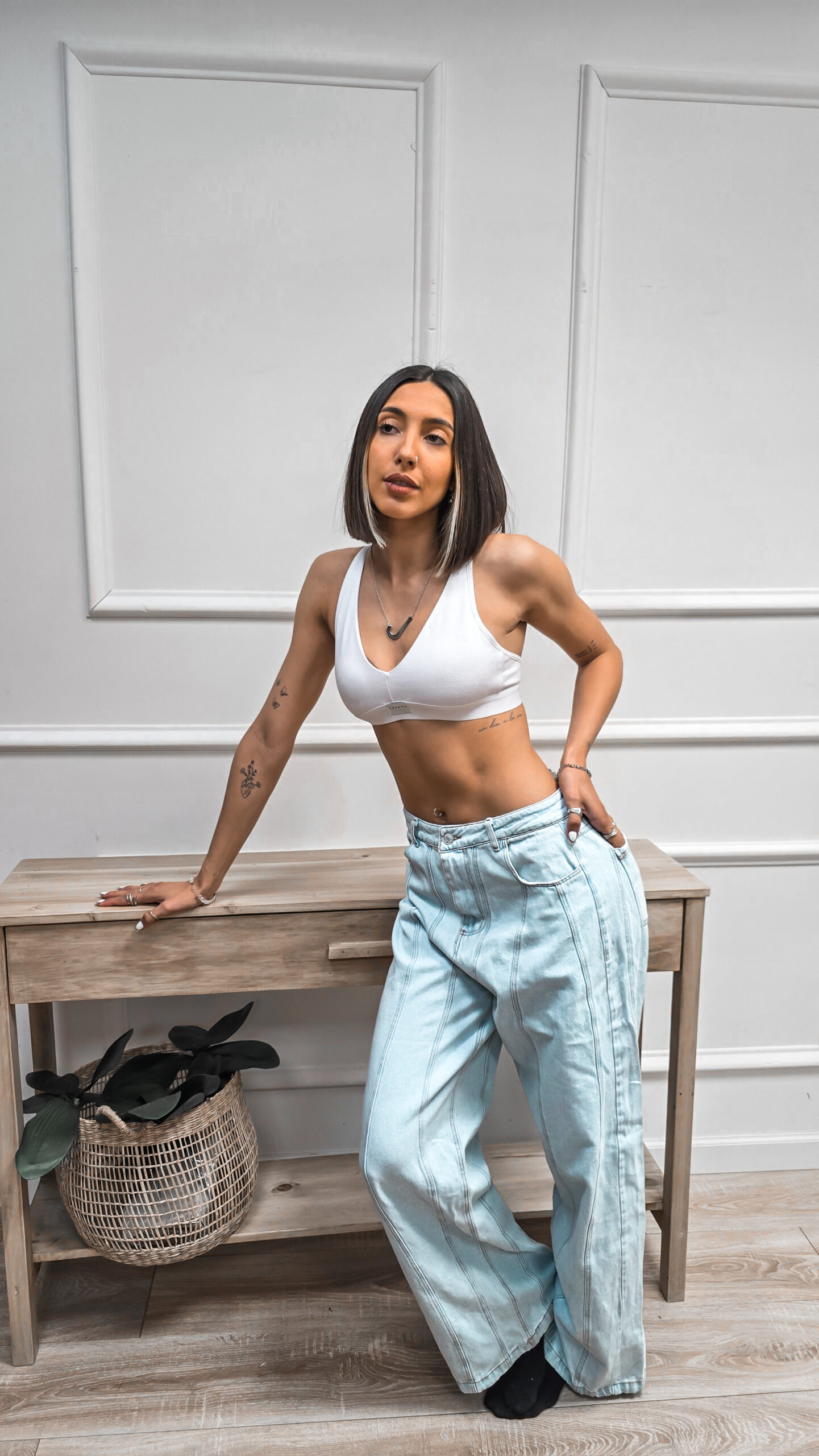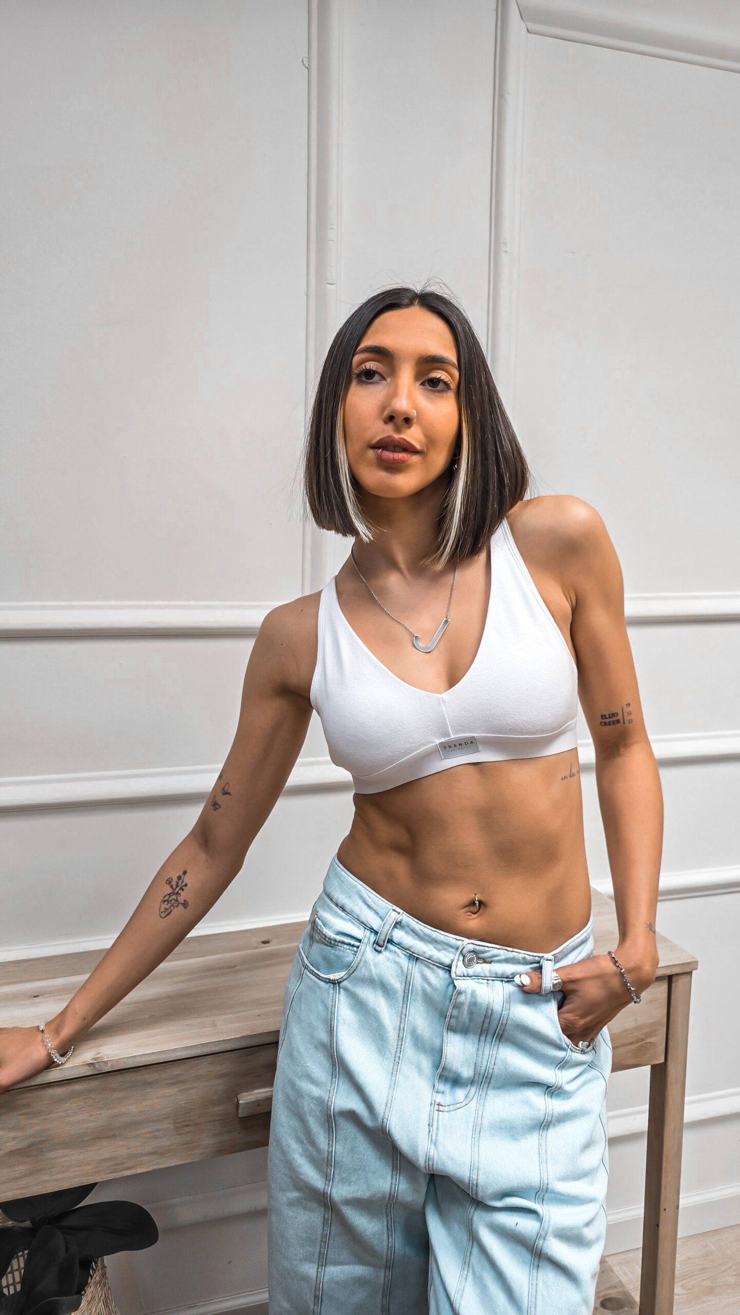 Conjunto de algodón. Corpiño bretel ancho, coleta ancha, prendidura trasera. Mas bombiless