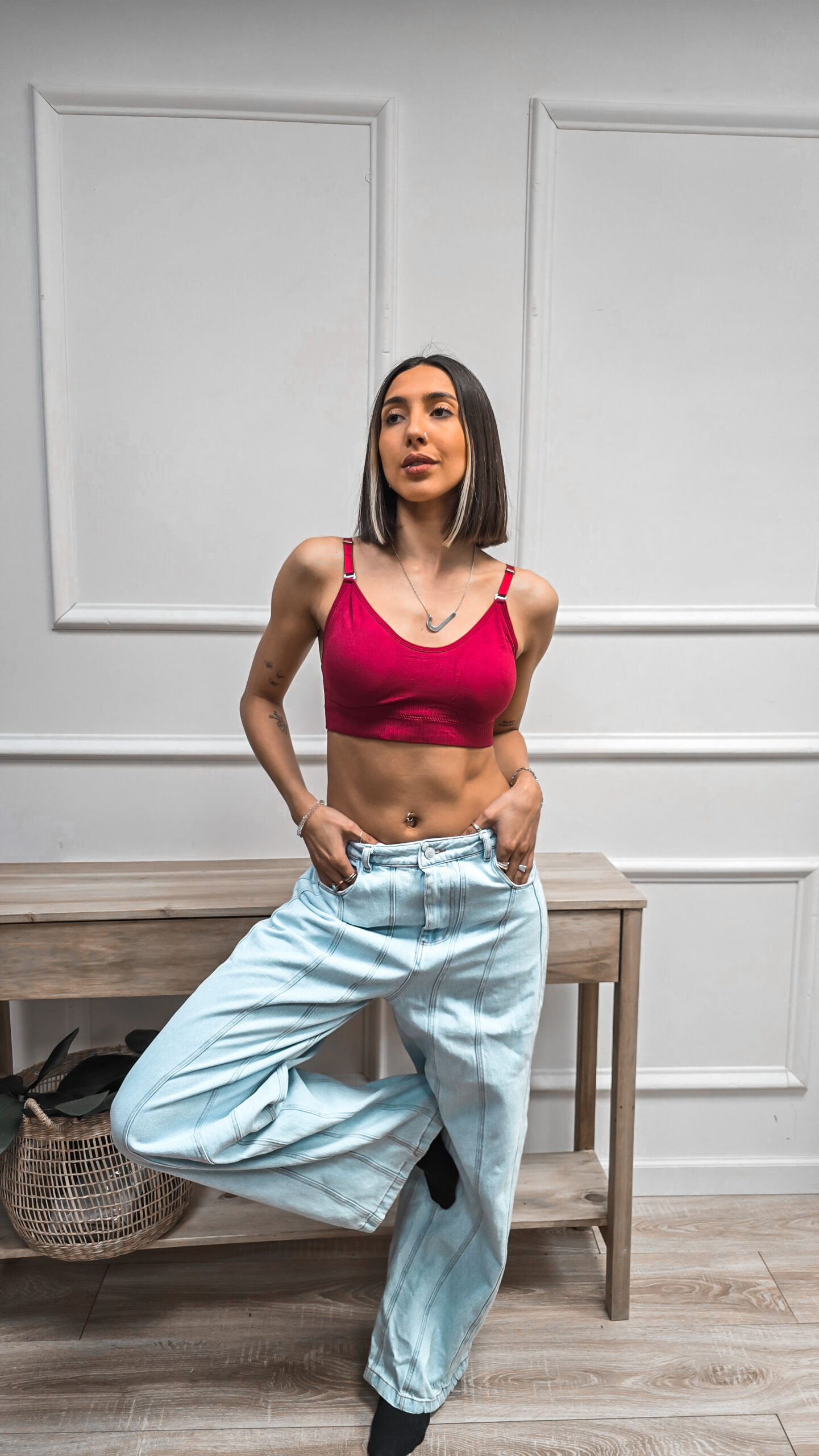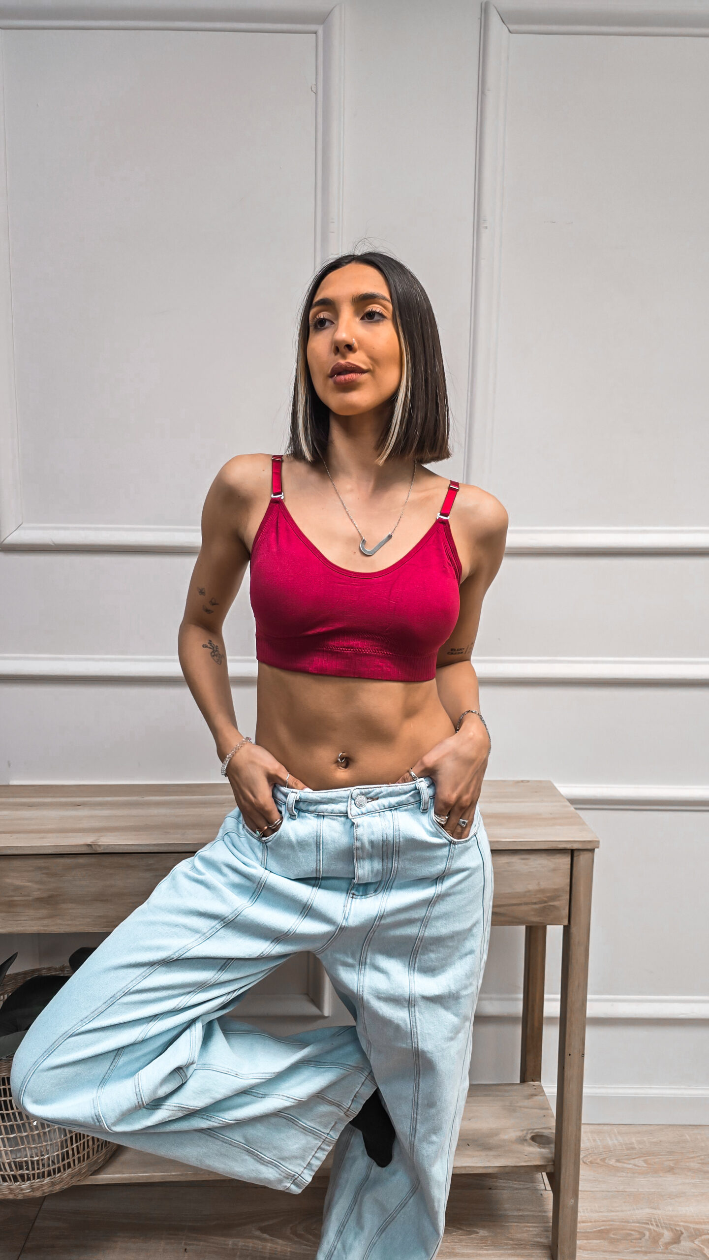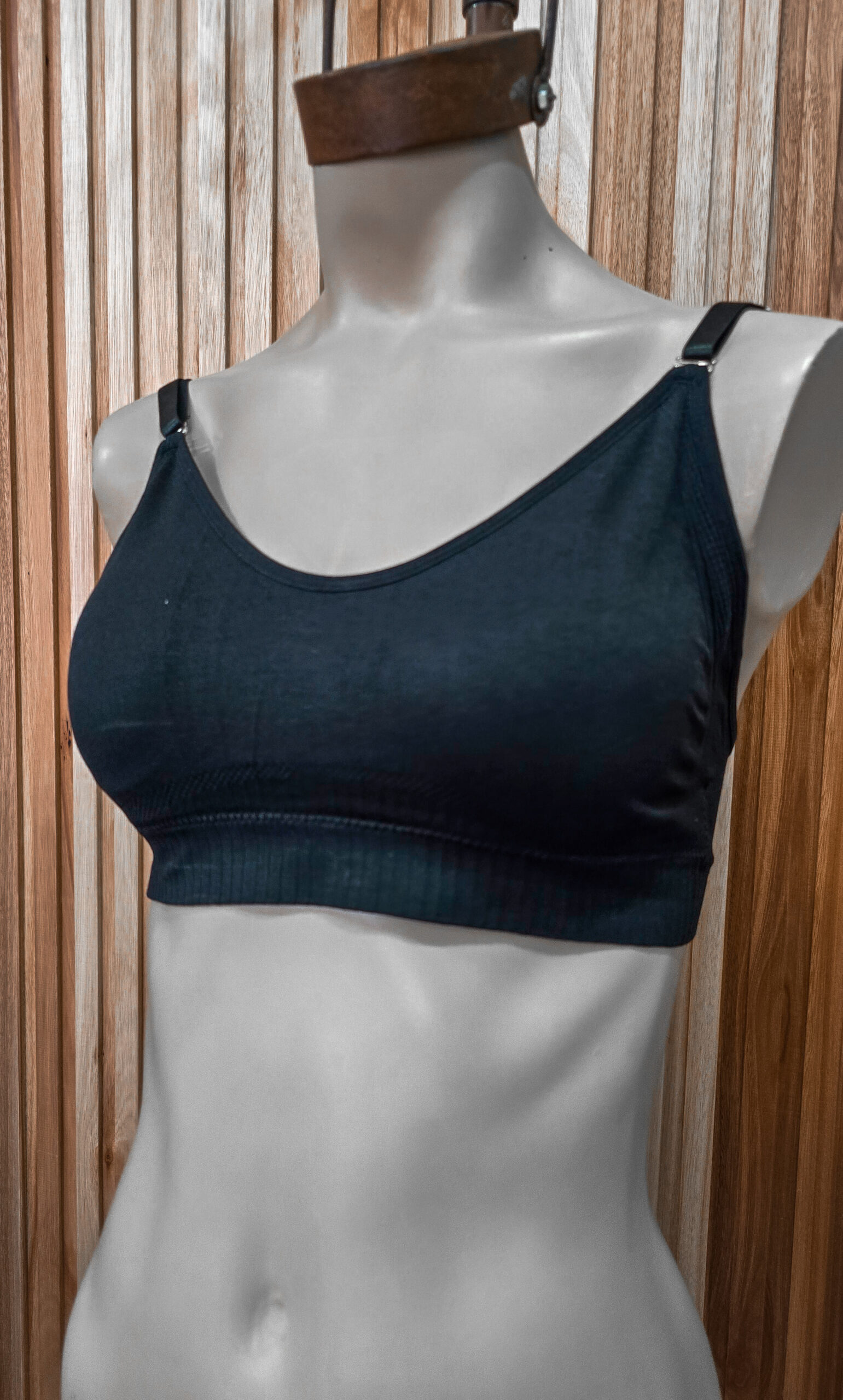 Corpiño de algodón, texturado, sin prendidura, tipo top, tazas y breteles desmontables. SIN BOMBACHA.