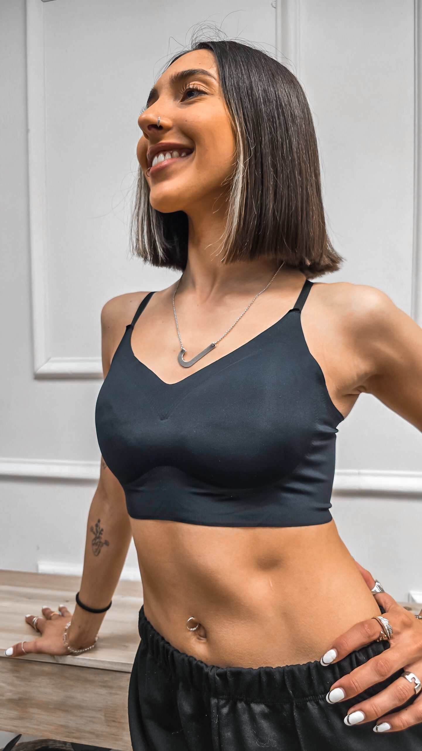 Corpiño de lycra sin costura, coleta ancha tipo top, breteles desmontable y regulable, tazas desmontabes. SIN BOMBACHA.