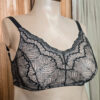 Corpiño reductor plenamente de encaje, forrado con micro tul. Bralette con aro, bajo busto alto, coleta y bretel anchos. Prendidura trasera con 6 broches. SIN BOMBACHA.