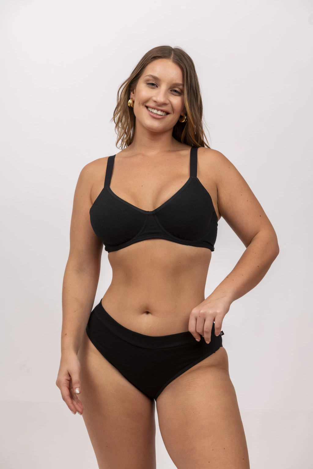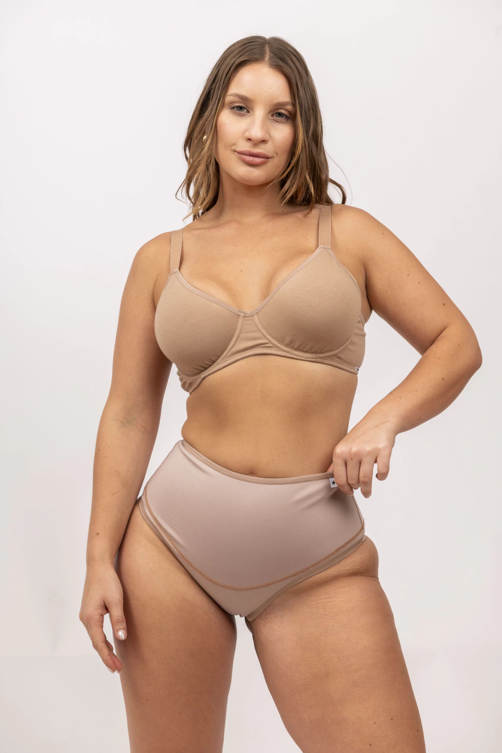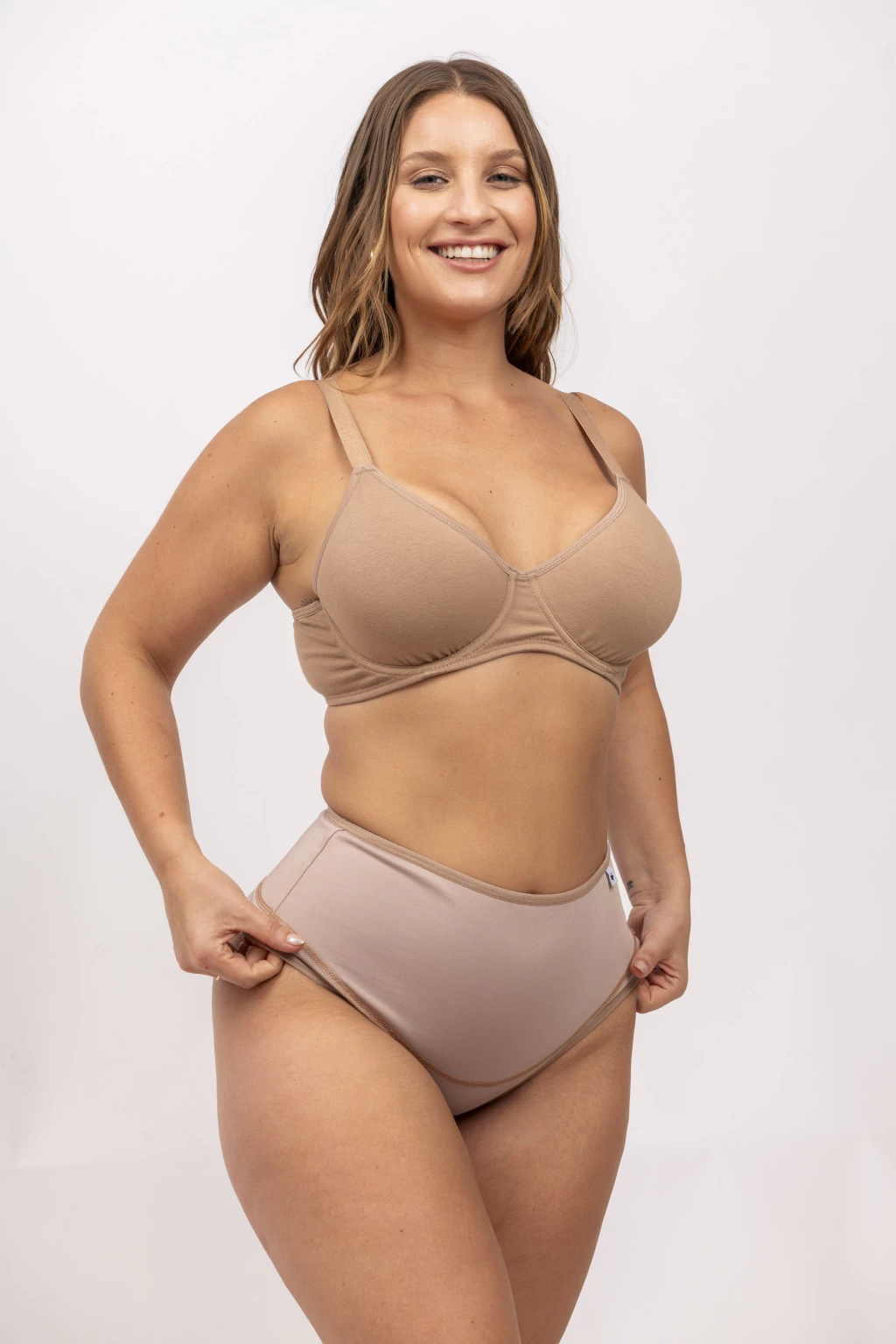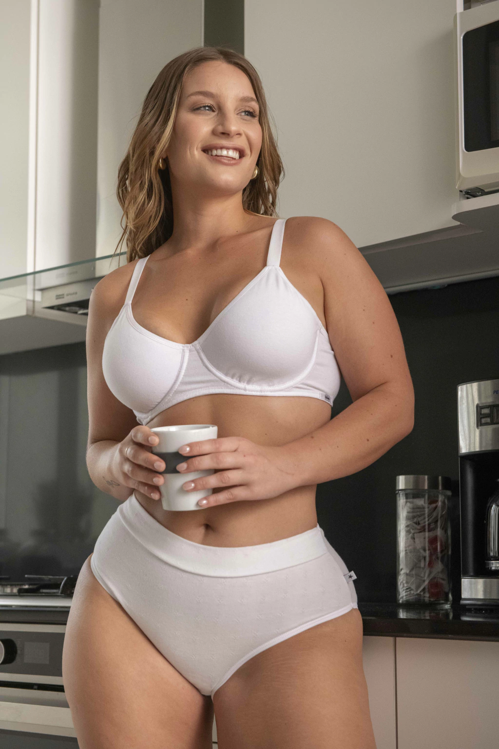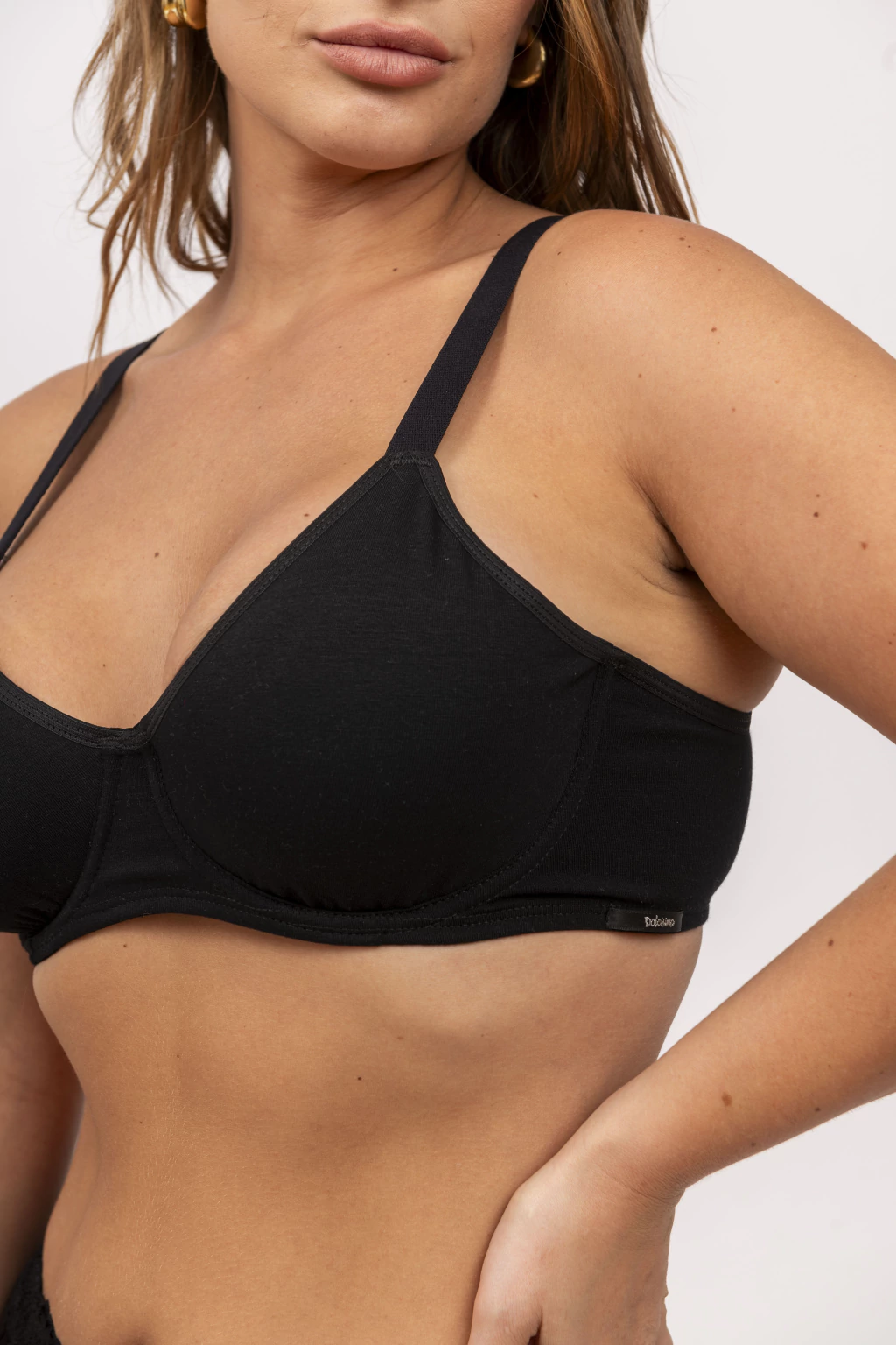 Corpiño reductor doble tela, de algodón 100%. Bralette con aro, costuras súper reforzadas, bajo busto alto, coleta y breteles anchos. SIN BOMBACHA.
