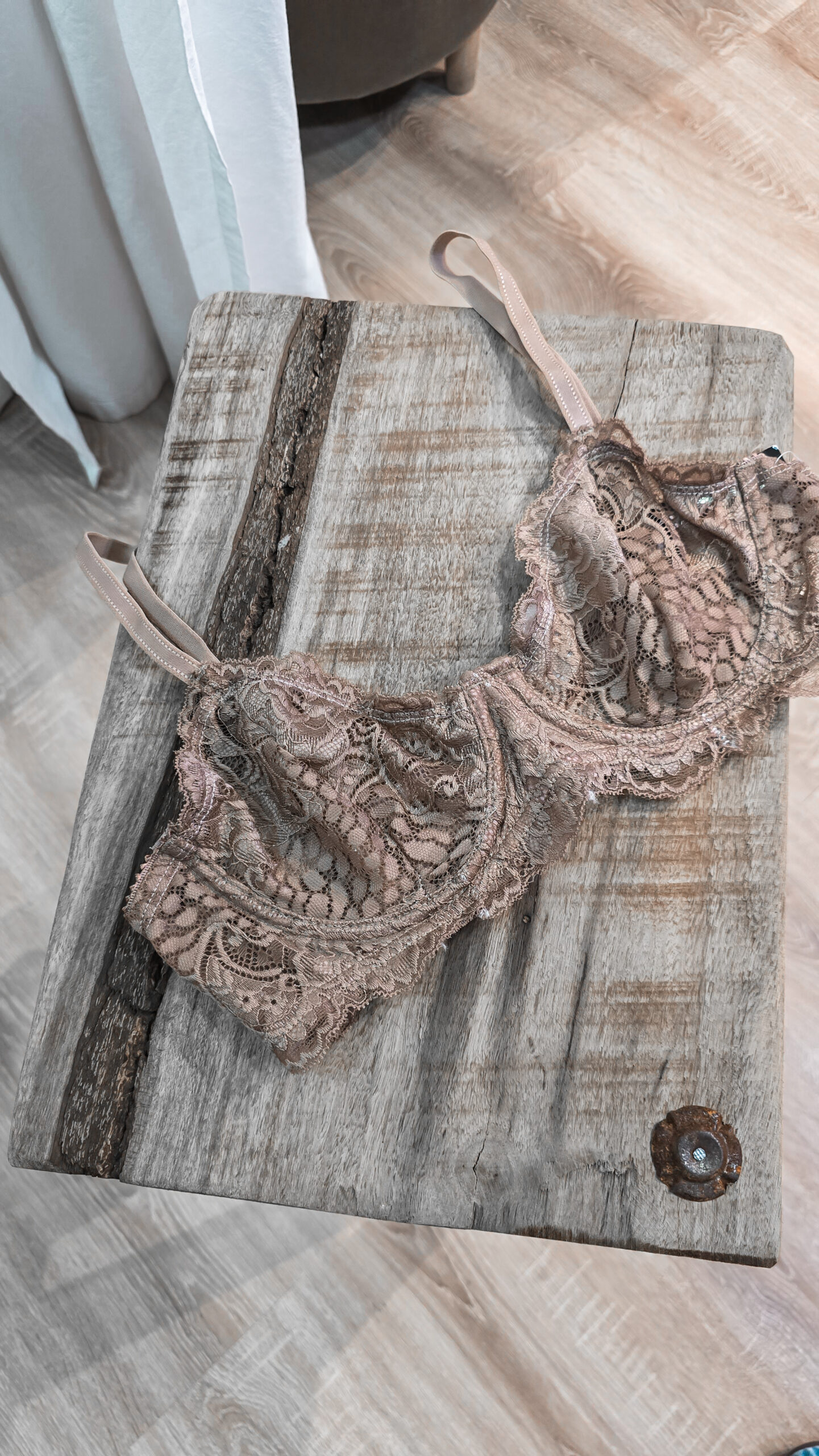 Corpiño bralette de encaje, con aro, coleta de encaje, prendidura trasera. Bretel regulable. NO TIENE BOMBI.