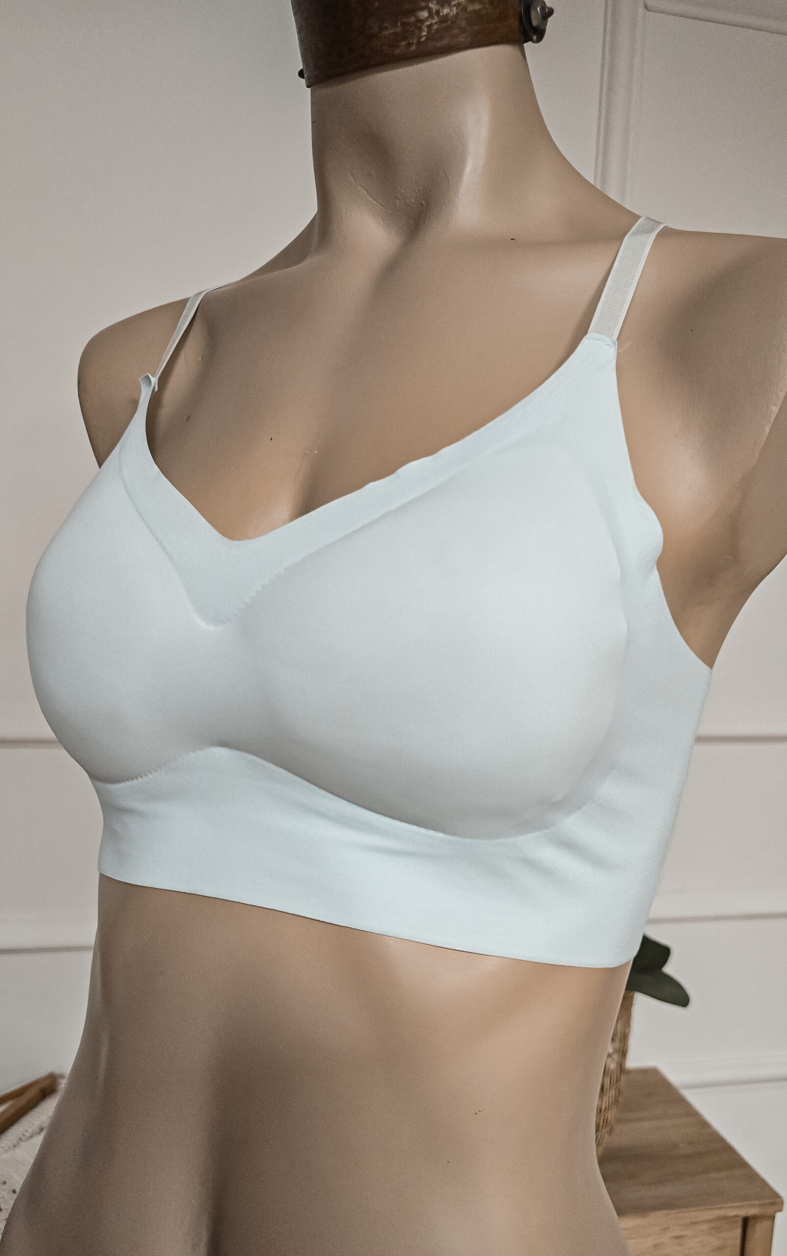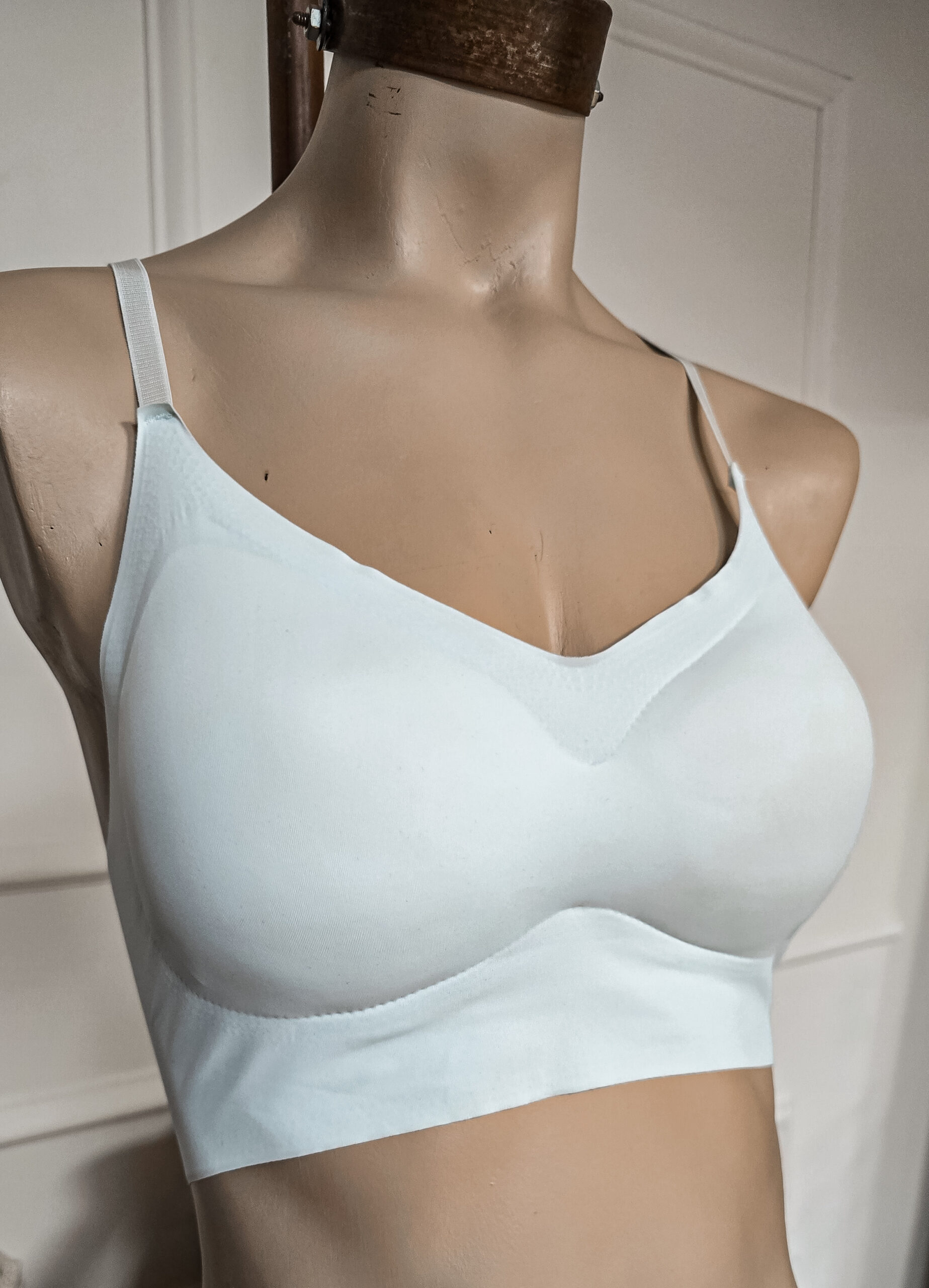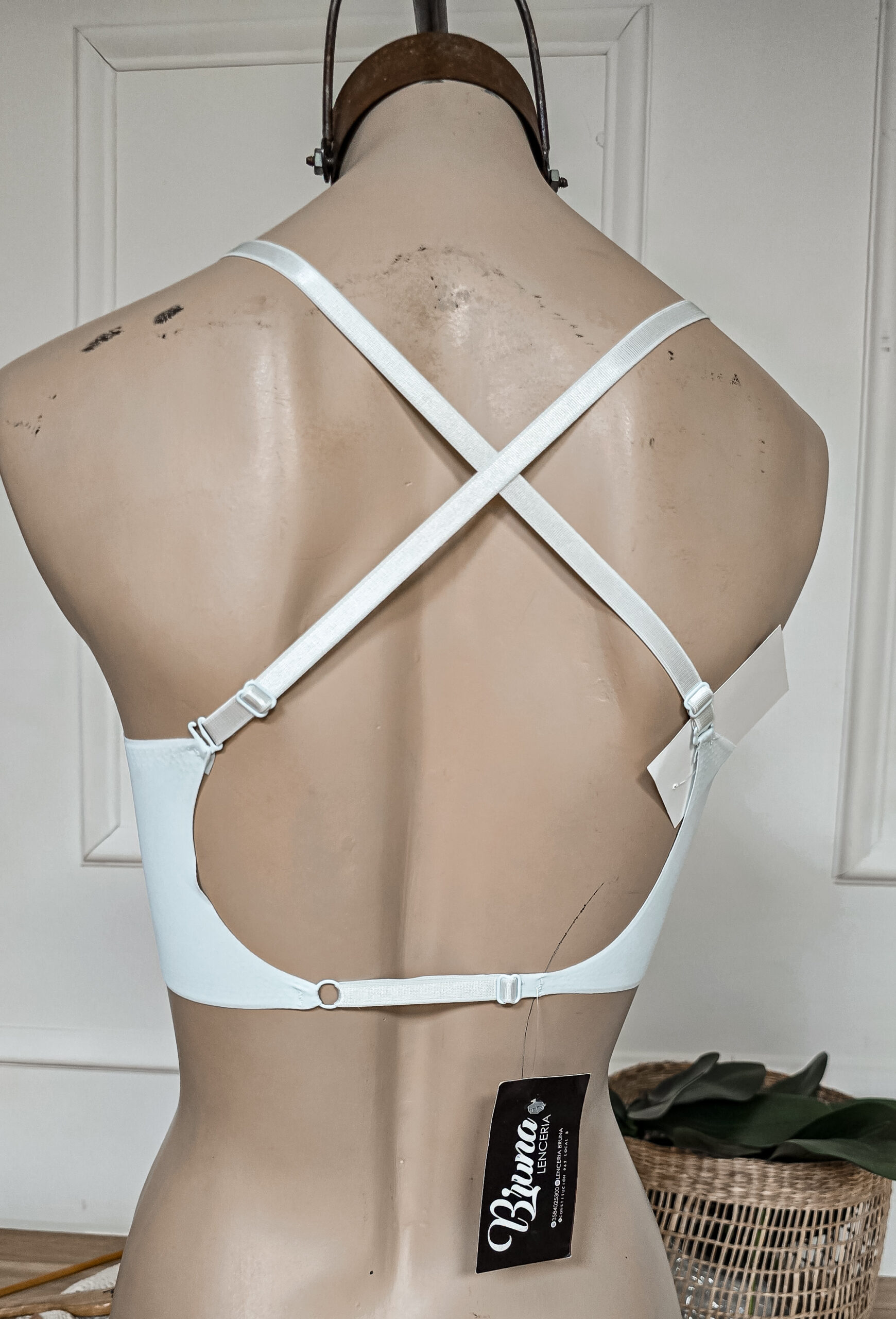 Corpiño de lycra sin costura, coleta ancha, breteles desmontables cruzados, regulables. Tazas desmontables. SIN BOMBACHA.