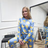 Pantalón largo de algodón, estampado, lazo decorativo en la cintura. Recto.