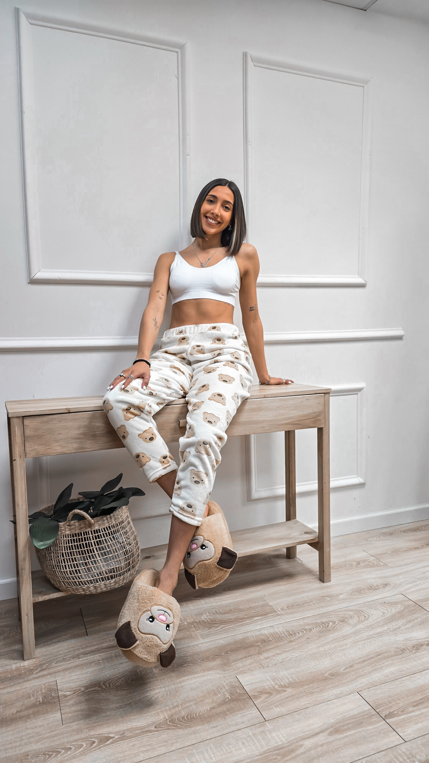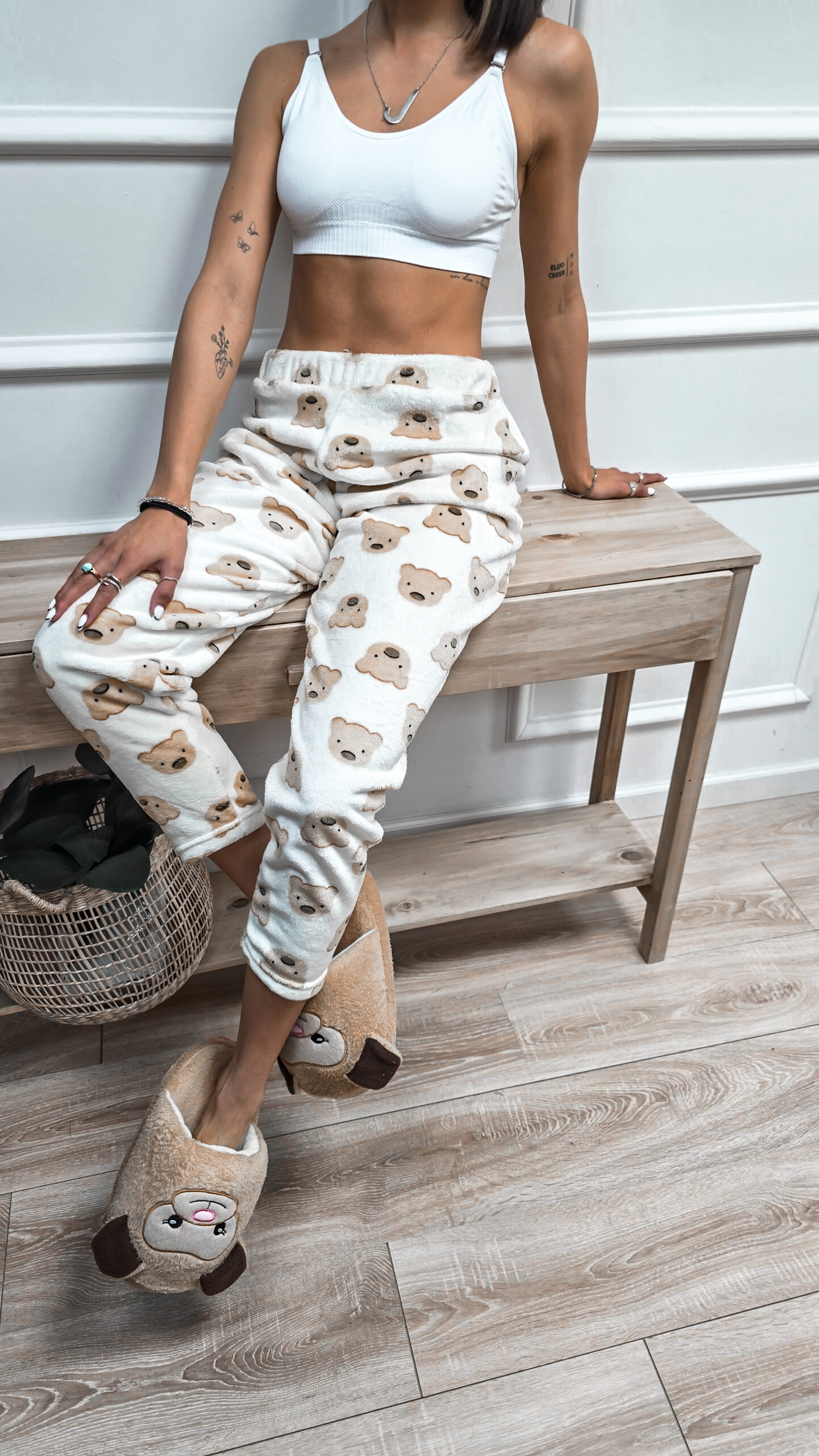 Pantalón largo, tela polar soft, estampado con cintura elastizada.