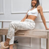 Pantalón largo, tela polar soft, estampado con cintura elastizada.