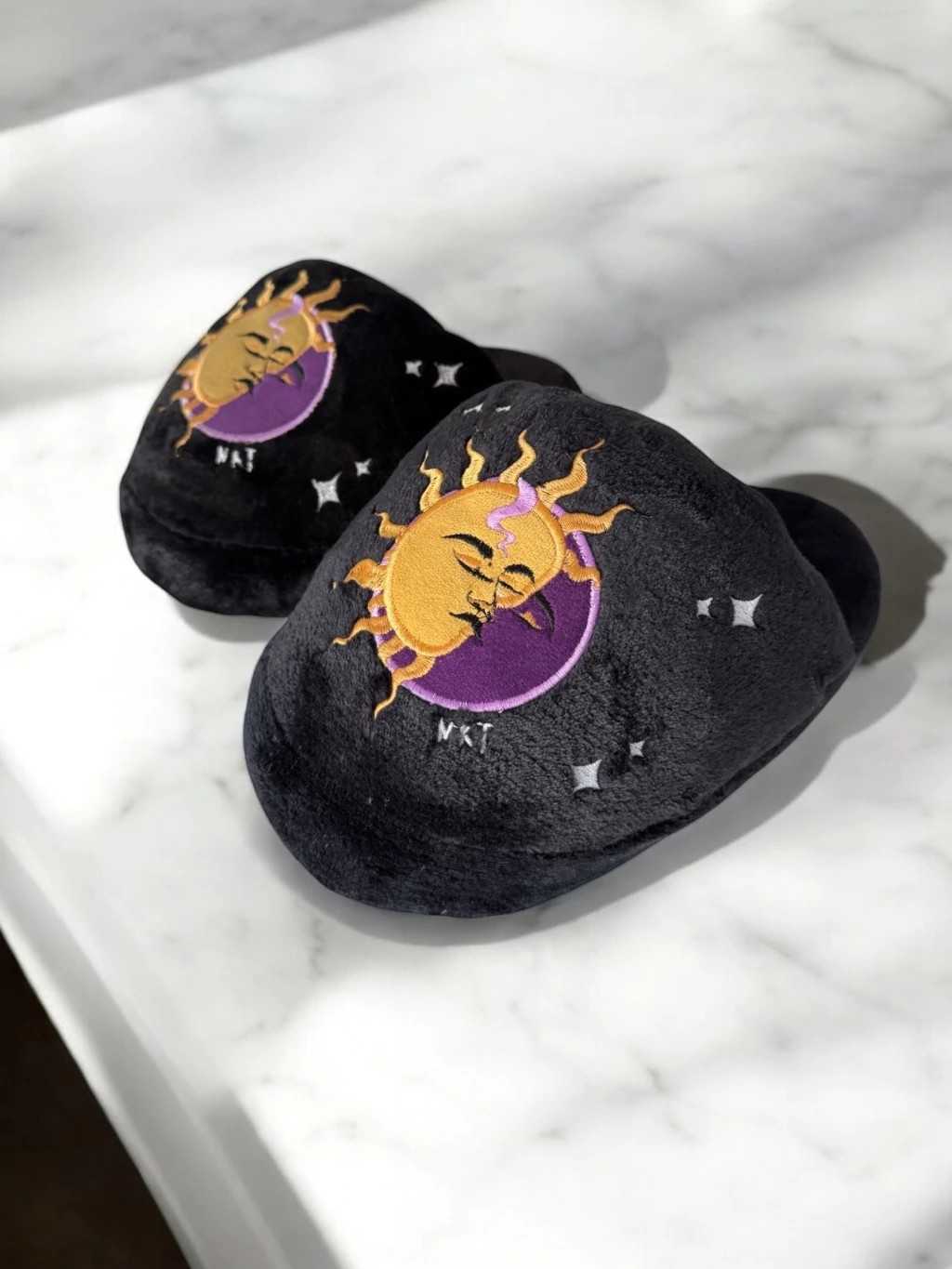 Pantuflas confeccionadas artesanalmente en polar soft. Bordadas. Suela antideslizante y textura calida y suave.