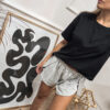Pijama de algodón, musculosa blanca lisa con detalle de puntilla en el borde del bretel super ancho. Pantalón estampado con detalle de falso lazo en la cintura.