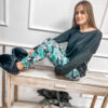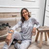 Pijama Algodón invierno. Pantalón recto con detalle de puntilla en la pierna, remera mangas largas escote redondo.