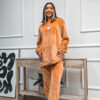 Pijama de lanilla. Remera mangas largas con puño, detalle de corazón bordado, cuello redondo. Pantalón largo, recto, bolsillos laterales.