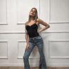 Pijama de verano lencero, de seda. Short con volados en la pierna y remera musculosa con breteles finos.